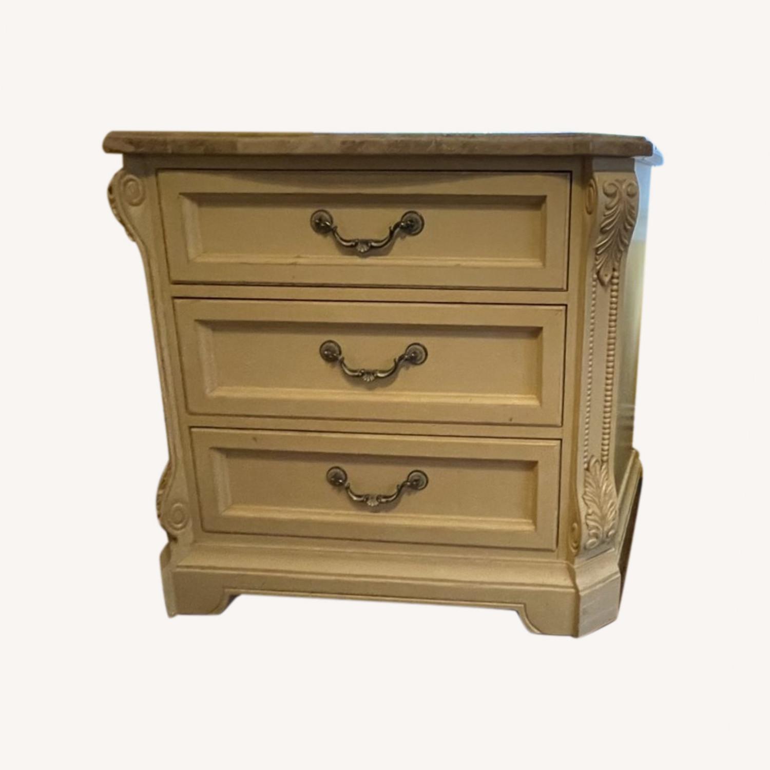 Seller's Notes:Also selling as a set with matching Marble Top Dresser + Mirror. Typical wear & tear stains can be cleaned with a toothbrush and gentle soap.