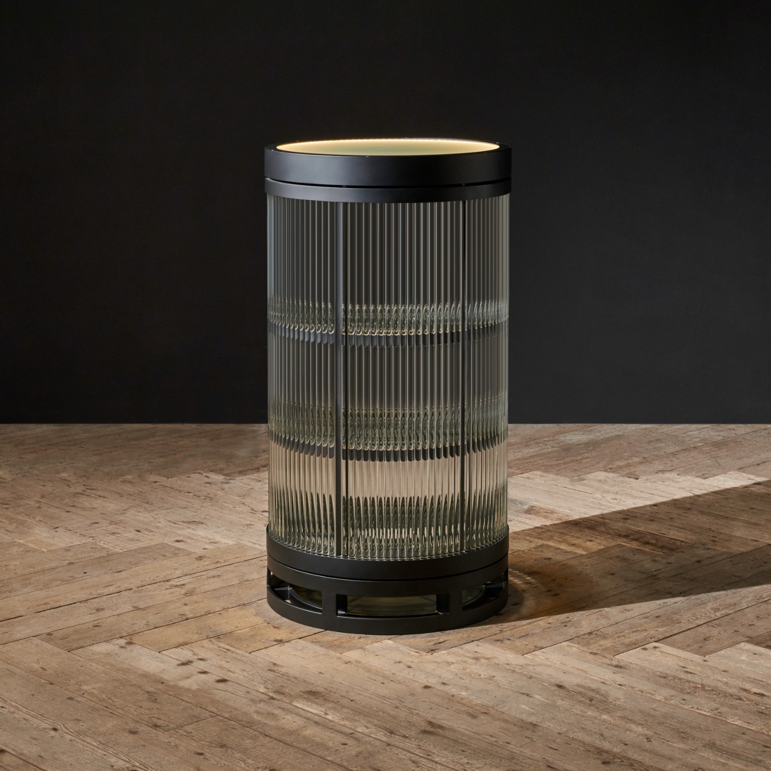 The sardonically named Biohazard bar cabinet is its own warning label, but this beautiful glowing capsule of handcrafted glass rods is tempting nonetheless. Held in a black frame, with LED lighting built into the top, the round sliding doors reveal a protected core of glass shelves, to hold bottles of your guests' favourite poison.