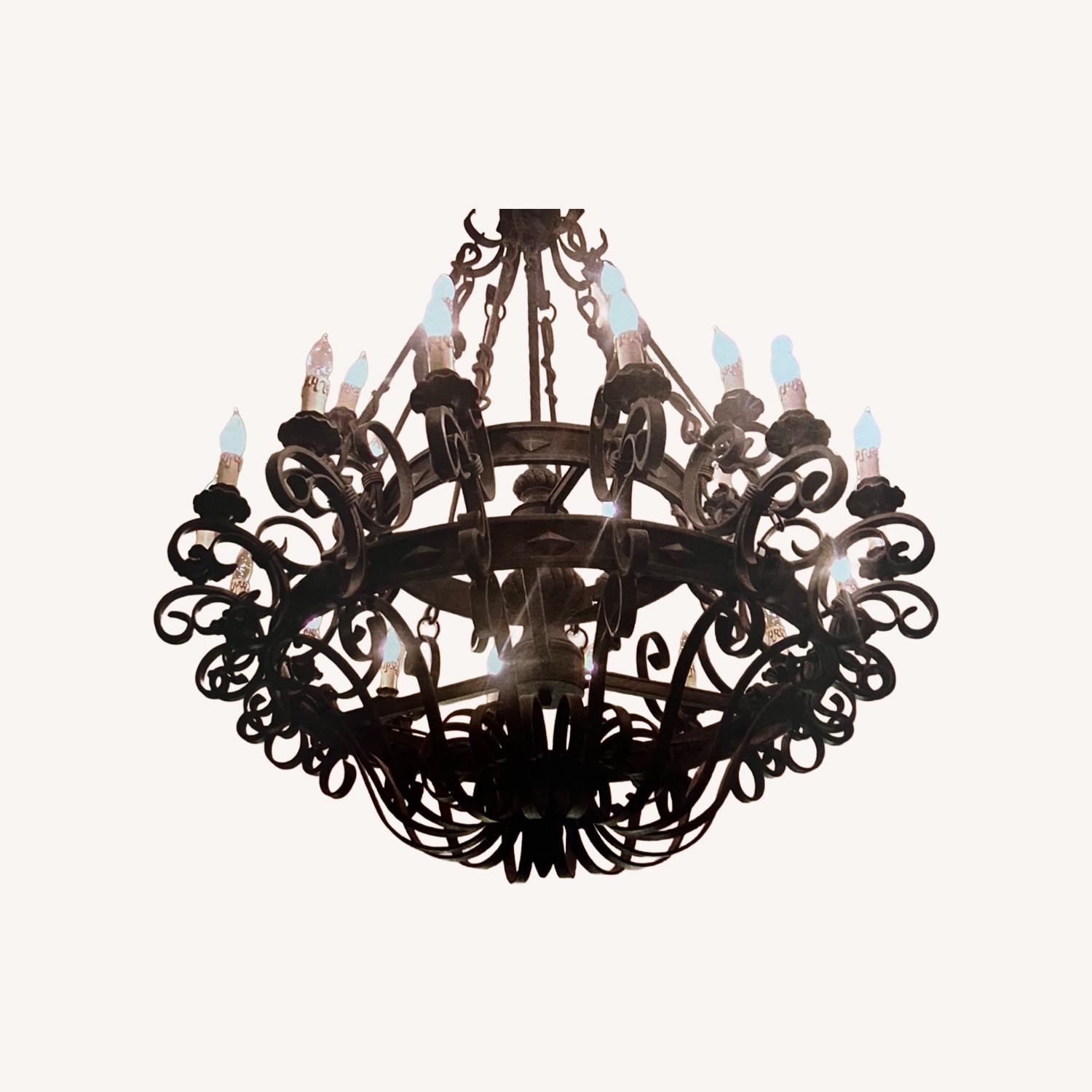 Seller's Notes:Tuscan Wrought Iron Chandelier Measurements Height 56” Diameter 43” Approx. Weight 350lbs Chandelier is packaged in a large crate
