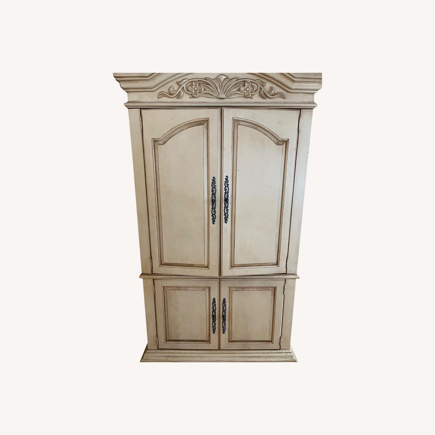 Wear and tear details: A few minor scratches not noticeable. Armoire has a 2 separate pieces (top & bottom)