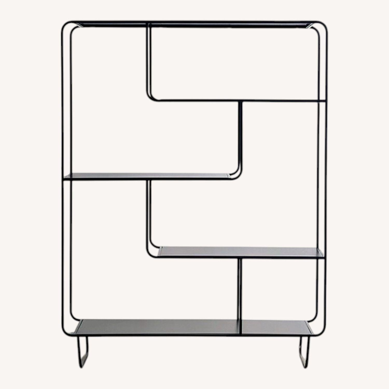 Powder-coated metal bookshelf with a modular look inspired by ‘60s décor. Featuring a variety of compartments with curving edges to store books, records set at a slant, trinkets and more, just the way you like. No two displays will ever be the same! Standing construction features looped legs. Assembly required. Available exclusively at Urban Outfitters.