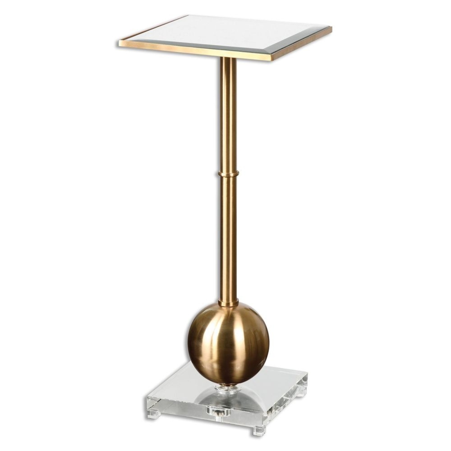 This beautiful accent table is a wonderful addition to any room. With a mirrored top and crystal foot this will bring beauty to your home decor.