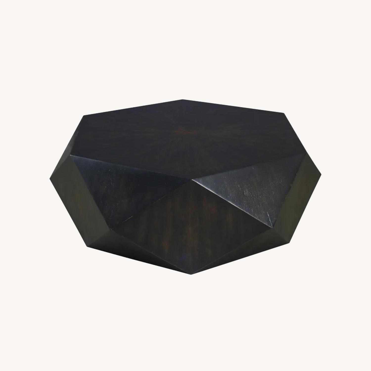 Seller's Notes:Add striking visual interest to your living space with the Uttermost Volker Coffee Table, a stunning statement piece that perfectly blends modern geometry with rustic character. This low-profile coffee table is crafted with a sunburst top of mango veneer, finished in a beautifully distressed black that’s hand-rubbed to reveal warm honey undertones for a truly unique look.