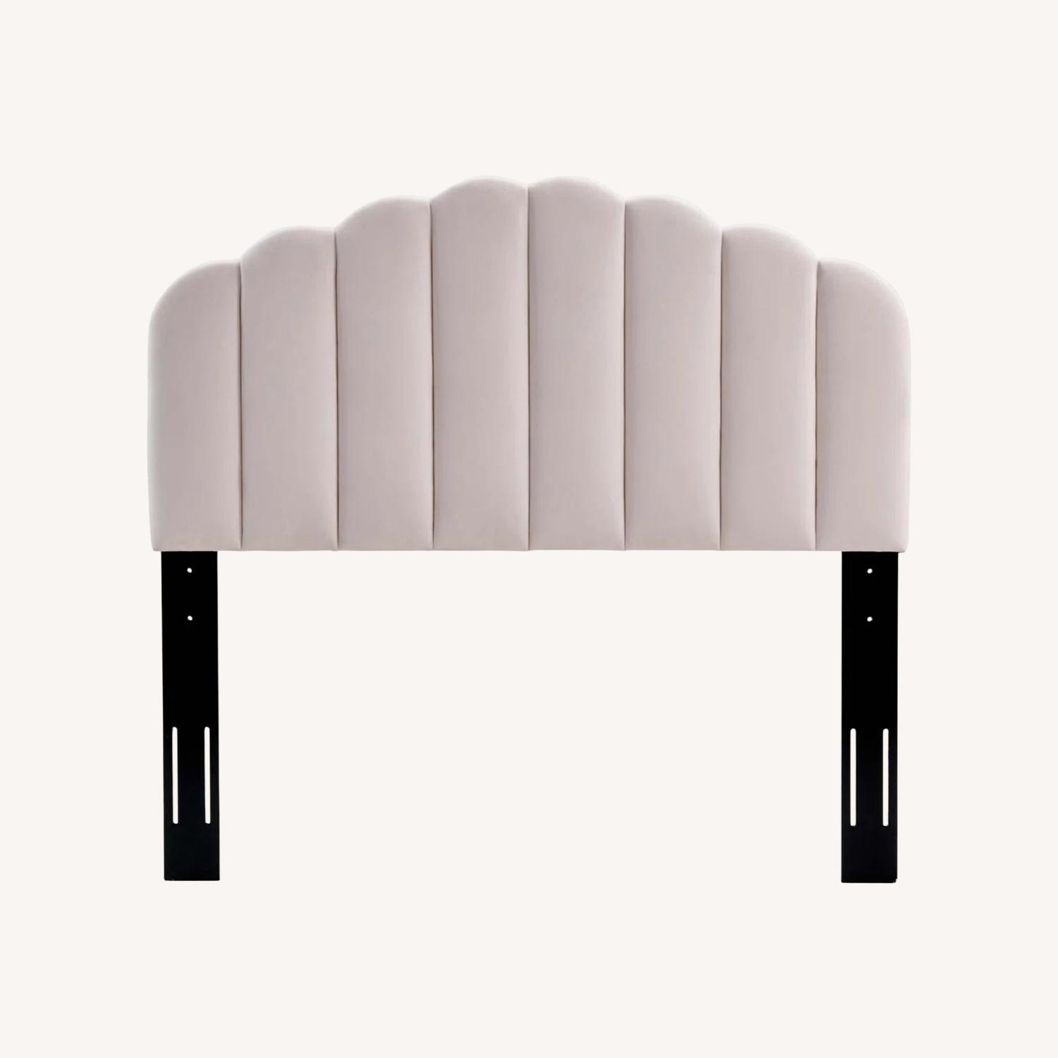 Claim the subtle elegance of vintage glamour with the Scalloped Performance Velvet Upholstered Headboard. Dense foam padding and stain-resistant performance velvet upholstery create a luxurious surface of repose when reclining, reading, or conversing in bed. The Headboard has vertical channel tufting details that combine with a scalloped edge to present a timeless elegance that enhances your bedroom decor. The Upholstered Headboard has four height-adjustable mounting positions to customize your bedroom needs and solid post legs for support.