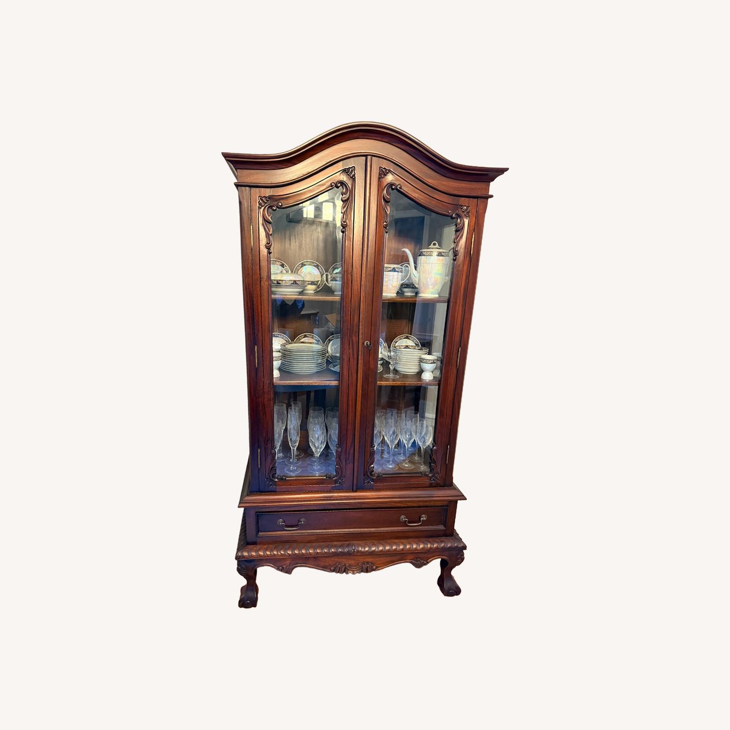Seller's Notes:We bought this in a small upstate town twenty years ago. It beautifully displays our antique china and crystal. It has been card for and polished.