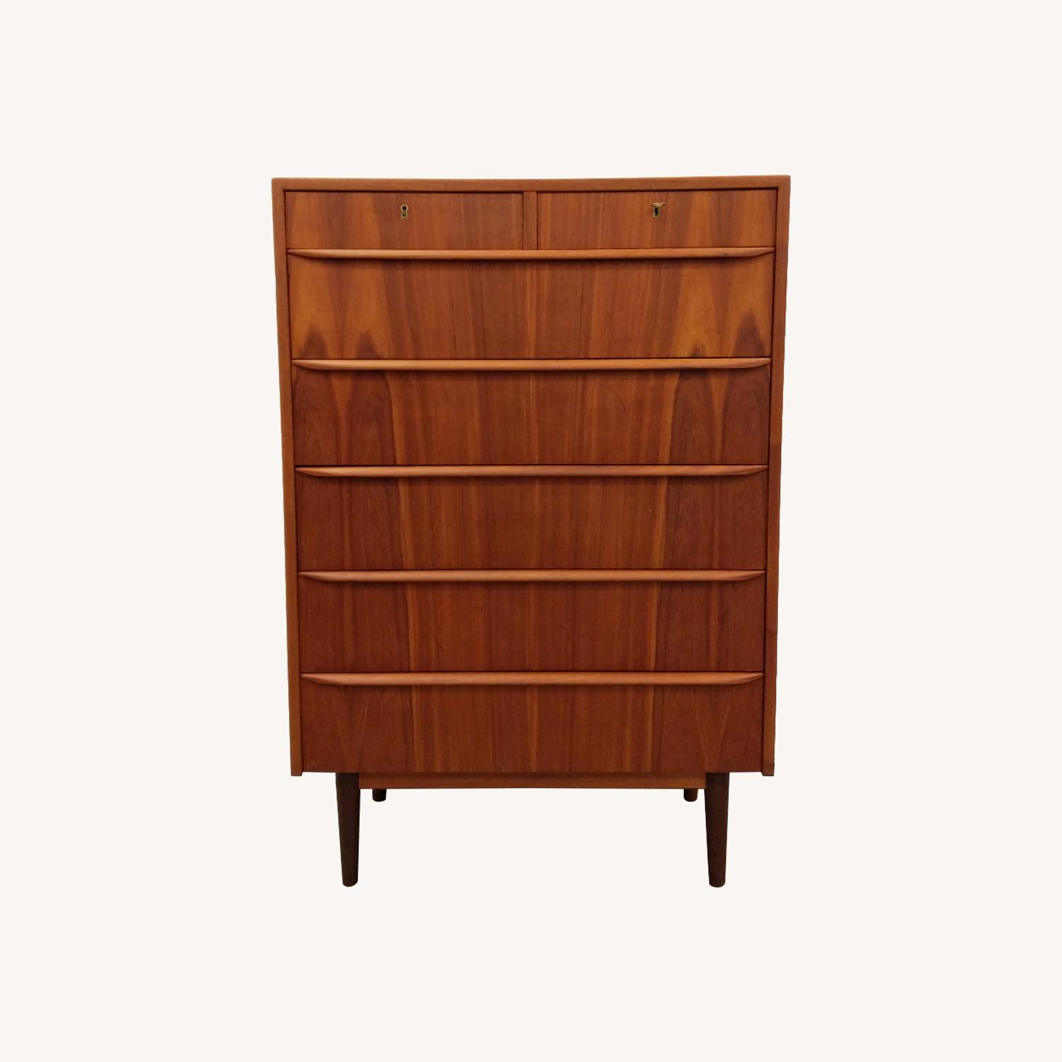 Seller's Notes:Authentic vintage mid century Danish / Scandinavian Modern teak dresser / chest of drawers. This piece is in excellent overall condition with few signs of age-related wear (see photos). If you would like any additional details, please contact us. Dimensions: 47" tall 31.75" wide 16.75" deep Ref: DK34-033