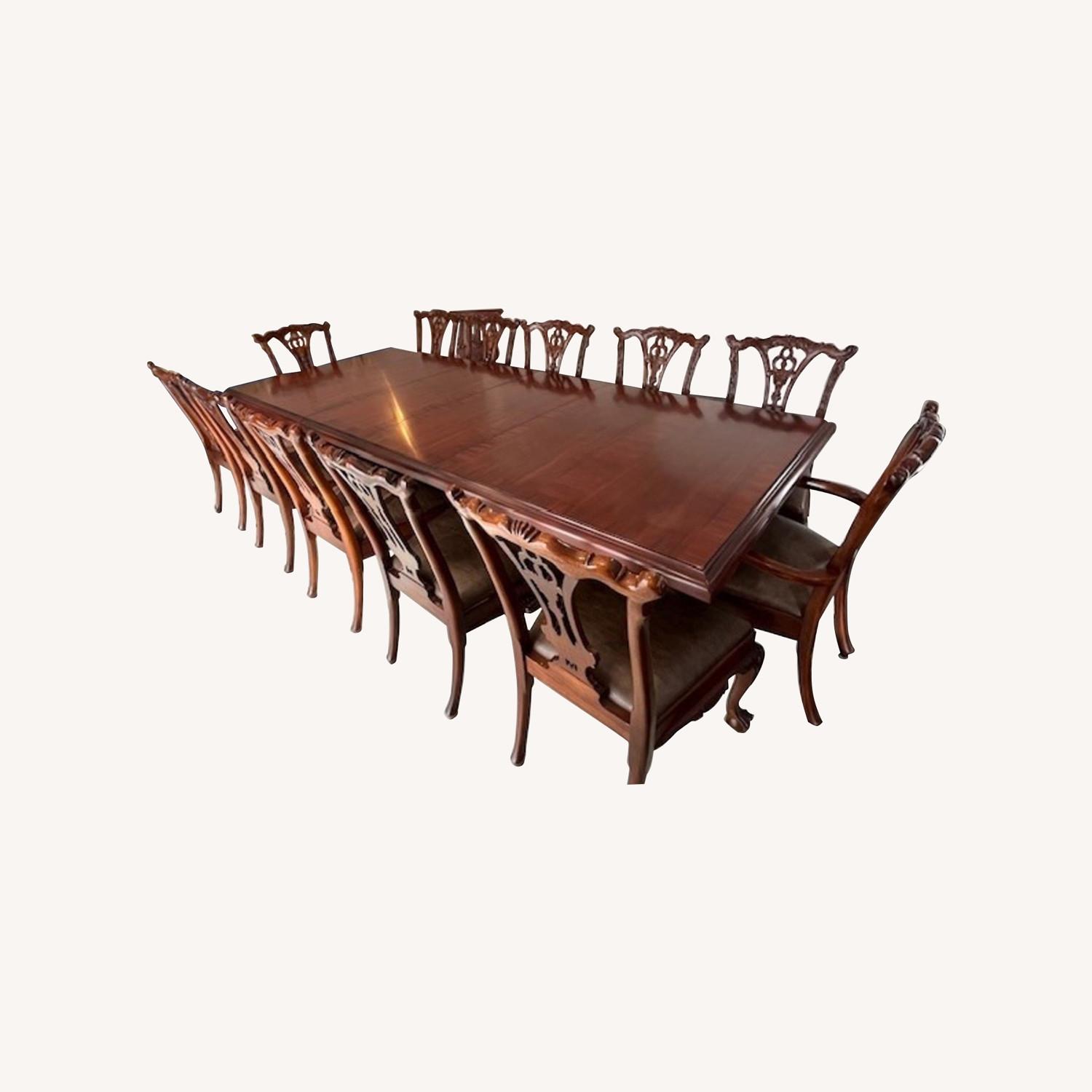 Vintage Dark Brown Carved Wood Dining Sets for 12