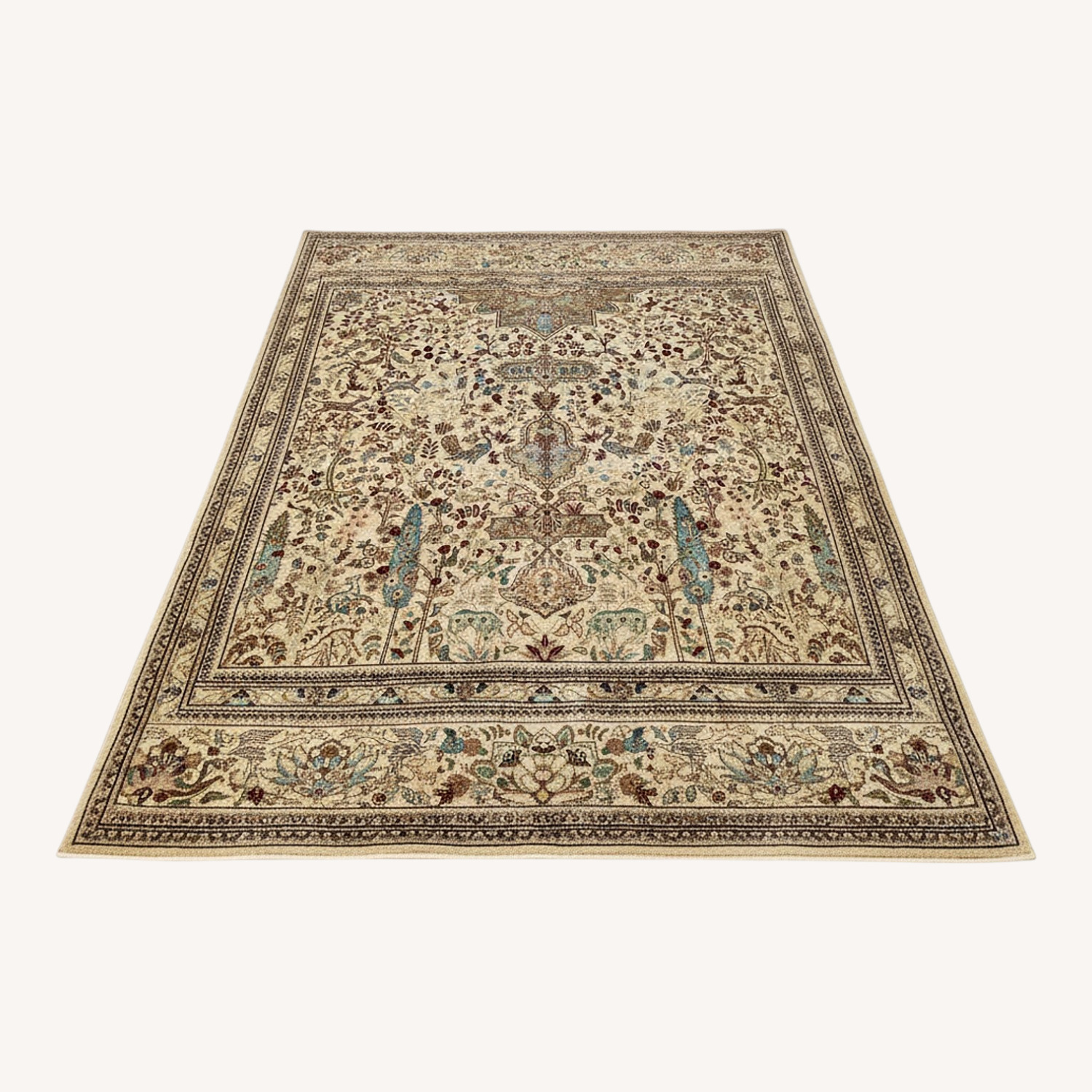 Seller's Notes:Gorgeous, authentic 100% wool 11x15 hand-knotted Persian Tabriz rug from the 1970s. Has intricate floral design with a central medallion and whimsical details of birds and animals in warm, muted tones of cream, rust, sage and pale blue. Crafted in the 1970s, this rug is very soft underfoot with a medium wool pile and besides some minor discoloration in a few places, it remains in excellent condition considering its age. Rug has recently been professionally cleaned, carefully stored and is ready for a new home! If you'd like to see additional photos, please contact me. It's too large to fit anywhere in my house to capture the full size of it in photos but I'm happy to send more details if requested.