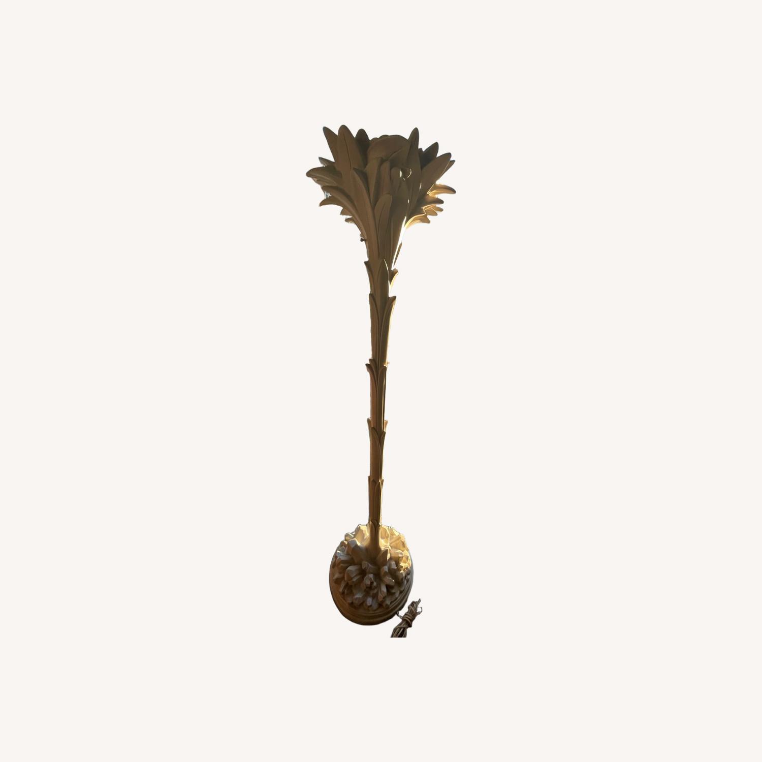 Seller's Notes:For sale is a stunning vintage floor lamp in the iconic style of Serge Roche. This sculptural torchiere features a detailed palm leaf design, perfect for adding a touch of glamour and atmospheric, upward-facing light to any sophisticated living space or grand foyer. * Style: Hollywood Regency, Post-Modern * Material: Plaster/Wood (confirm actual material) * Condition: Very Good vintage condition. Structurally sound, only one small chip.