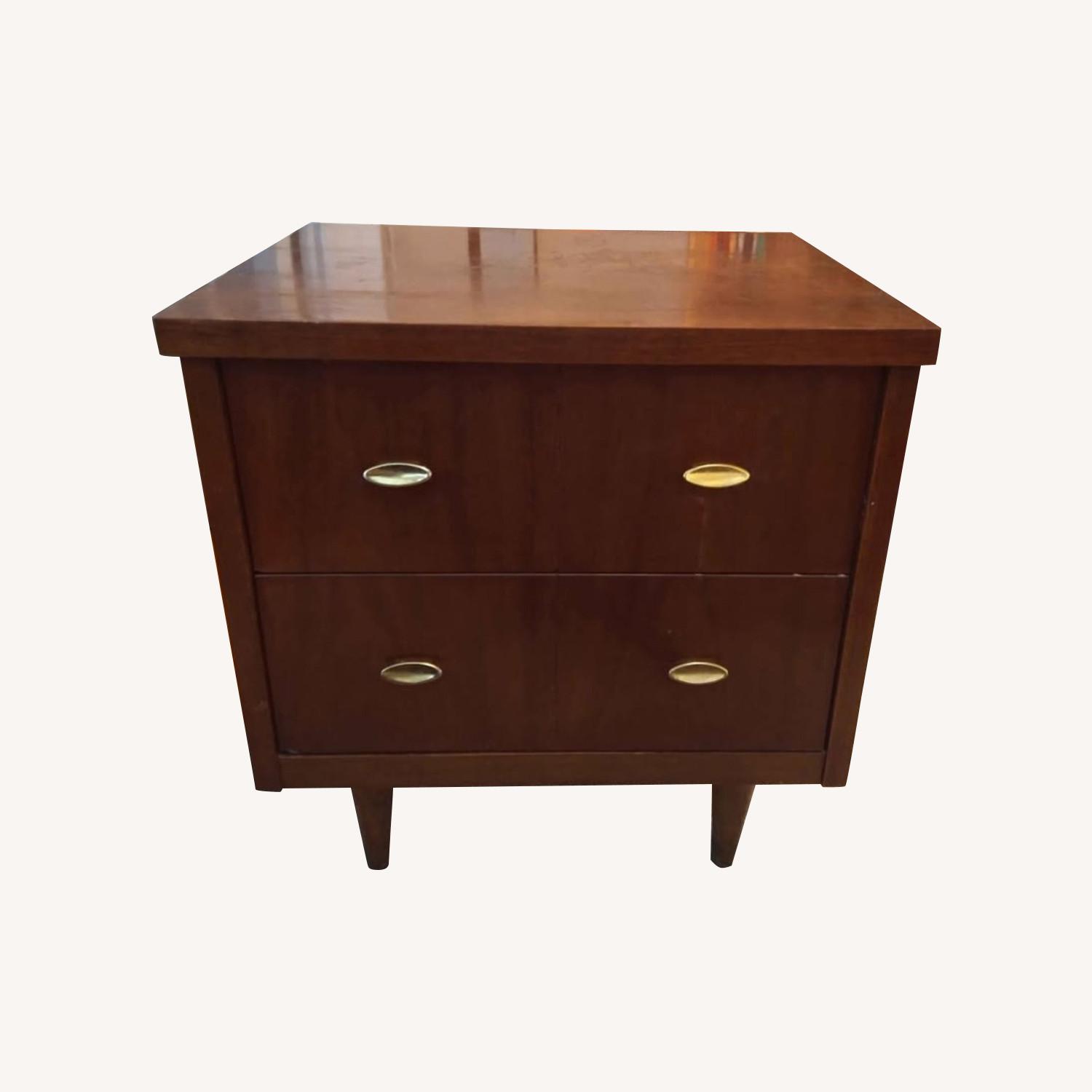 Seller's Notes:Perfect little side table for beside your couch, favorite comfy chair or bedside! Two drawers for ample storage, mild dings and scratches here and there but nothing major; and can hardly be seen once your things are on top ;) Measurements are 20" wide, 15" deep and 23" tall 🤎 Your purchase helps Project Greenville continue to provide free art events for the Greenville section of Jersey City 💚