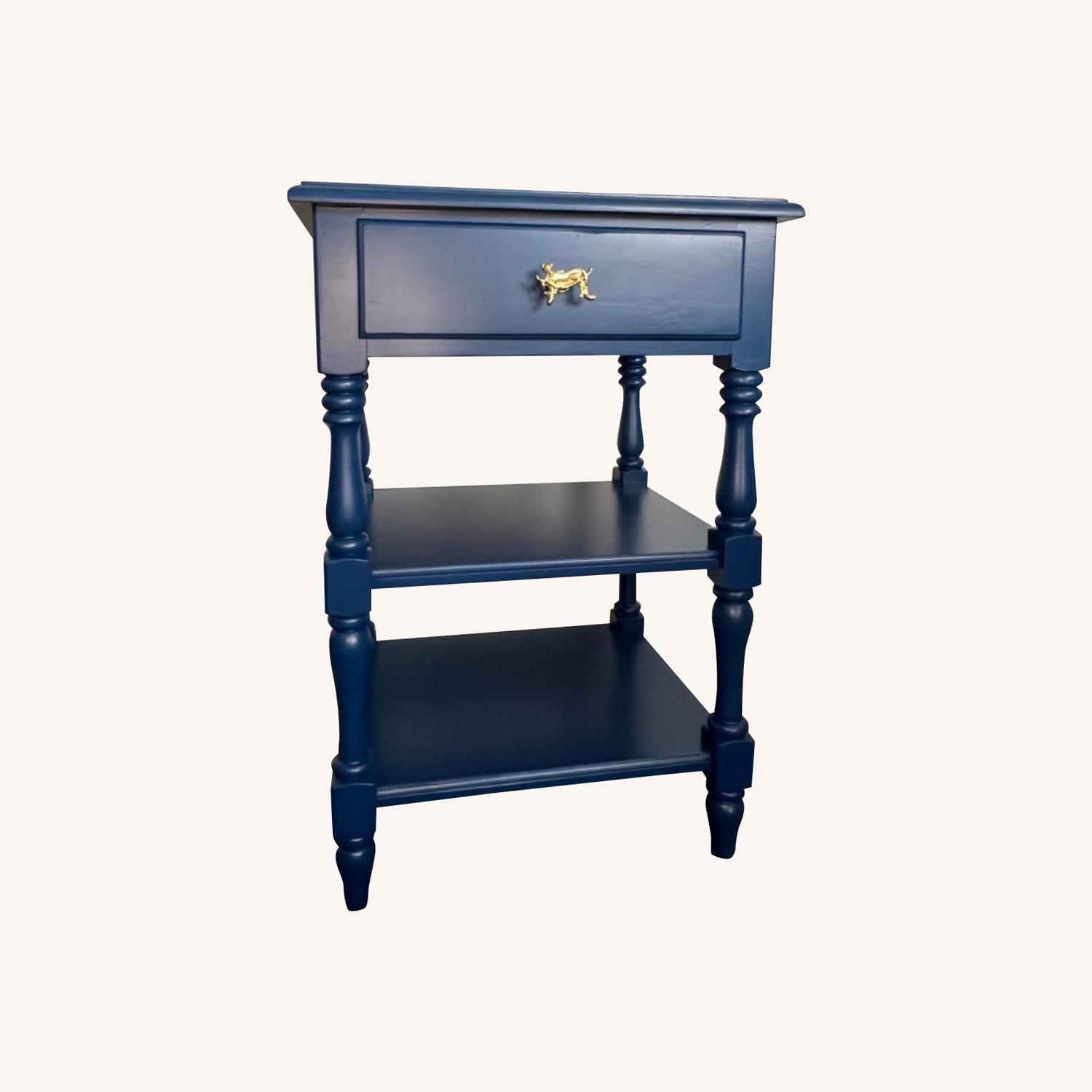 Seller's Notes:Vintage table, professionally refinished in royal blue with gold jaguar hardware.