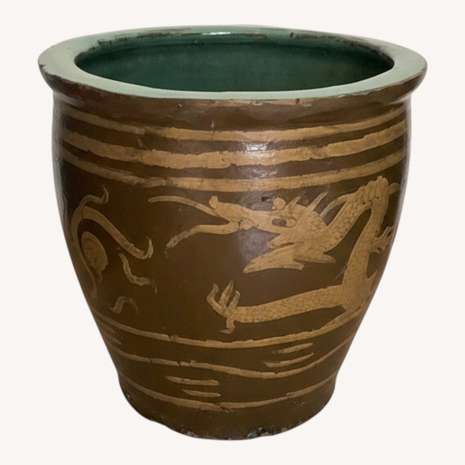 Seller's Notes:I purchased this pot over 40 years ago in a store in Chinatown. They used these heavy ceramic pots to transport duck eggs. When they sold the last duck egg if you were lucky they would sell you the empty pot.