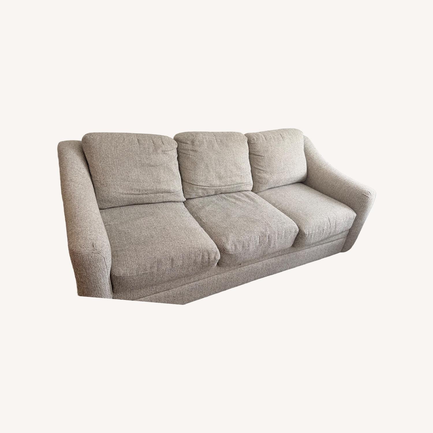 Seller's Notes:Tan upholstered sofa in good used condition with removable, machine-washable upholstery covers. Neutral color that works well in most spaces. There are a couple of minor scratches on the legs from normal use. This was kept in a nice condition in a smoke free/ pet free home. Overall, the sofa is sturdy, very comfortable, and has been well maintained in excellent condition. Dimensions (inches): • Depth: 35” • Width: 80” • Height: 38” I accept cash/Venmo/Zelle/whatever AptDeco uses as well.
