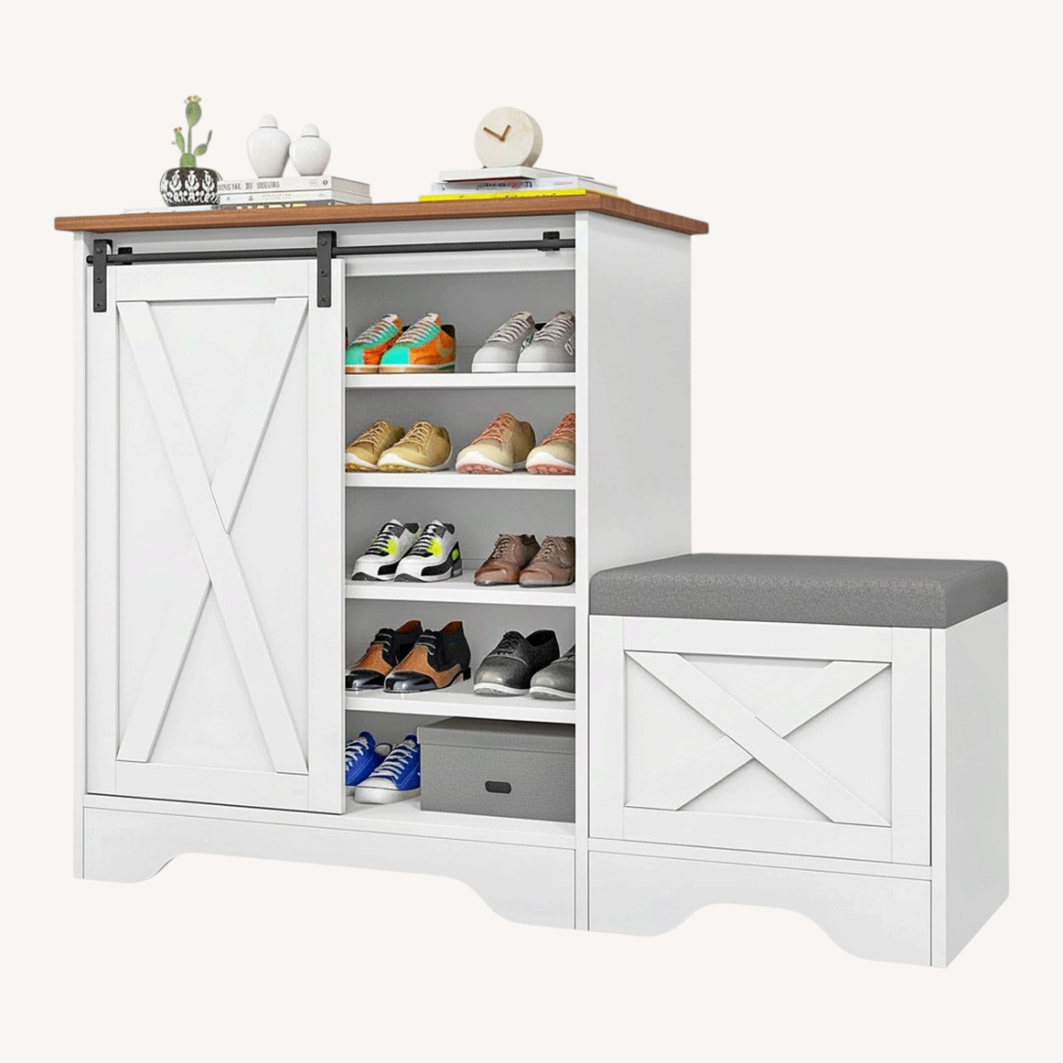 Wayfair 5-Tier Farmhouse Shoe Cabinet with Sliding Door & Shoe Bench