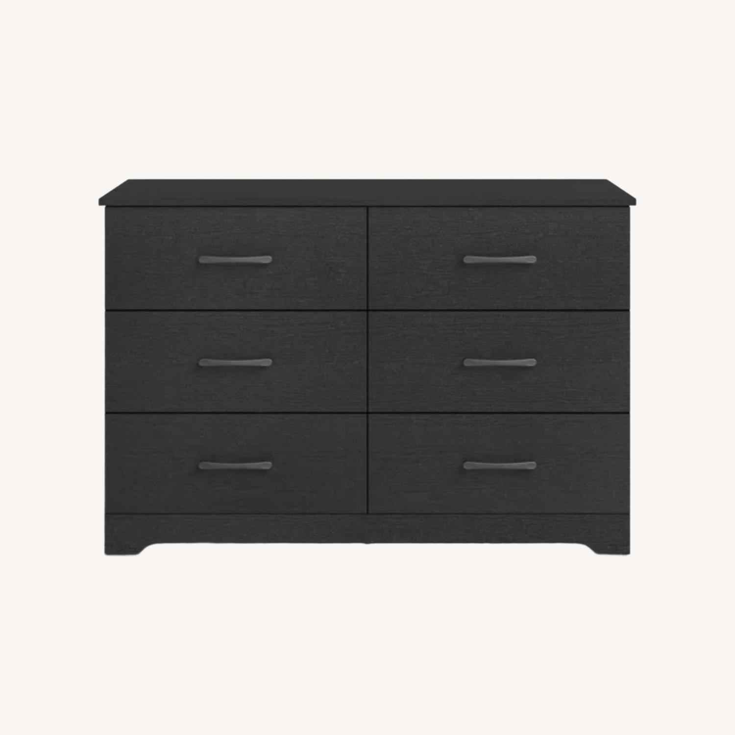 Seller's Notes:This clean-lined 6-drawer dresser brings essential storage to your bedroom or guest room with a relaxed, modern farmhouse feel. Its wide frame is made from engineered wood, featuring a distressed wood-look finish that complements a wide range of decor styles. It stands on a plinth base, and the six drawers feature black arch pulls for a subtle, contemporary contrast. The spacious surface is the perfect stage for a vanity mirror, a lamp, and small accent pieces. It also includes removable drawers for ease of use.