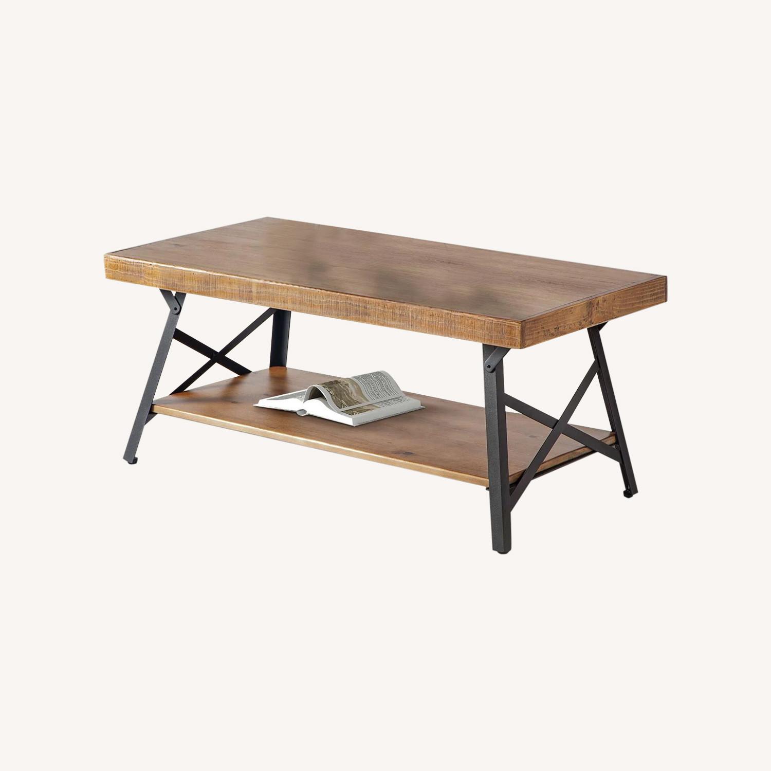 Used Rustic Wood & Metal Coffee Table – Open Shelf for sale on AptDeco