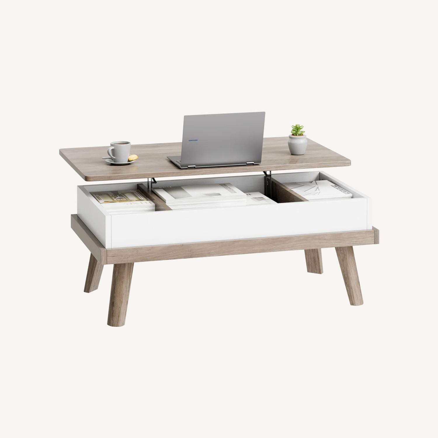 Seller's Notes:Designed with style and functionality in mind to provide a multitude of uses. Our coffee table will bring a whole new change to your life. It not only serves as a dining table for drinks and food, but can also be used for work when you lift the tabletop.The hidden storage compartment under the tabletop provides additional space to place items and keep your living space organized. This functional coffee table is certainly a good value chocie for any limited space like small apartments, dorms, and dens as well.