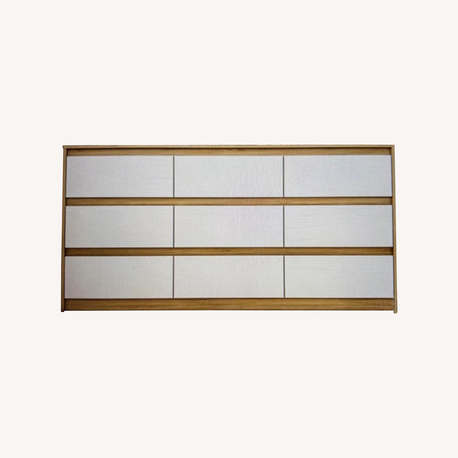 Seller's Notes:9 large drawer dresser, white and light brown.