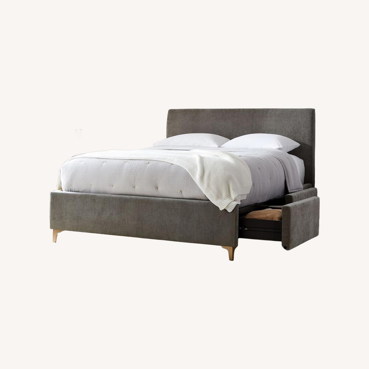 Seller's Notes:West Elm Andes Side Storage Bed - Full, Mineral Grey Performance Distressed Velvet. Retails for $2,100.