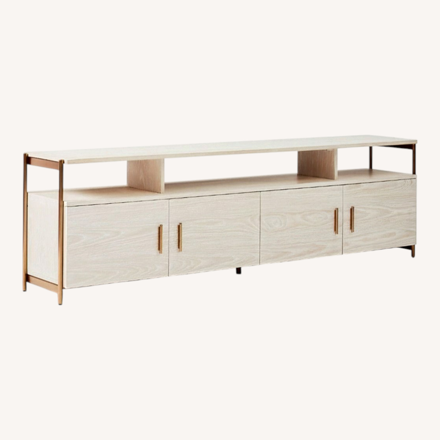 Seller's Notes:Beautiful West Elm Foundry Media Console in excellent condition. This modern industrial piece combines warm wood tones with sleek metal detailing, making it a statement storage piece for any living room or media space.