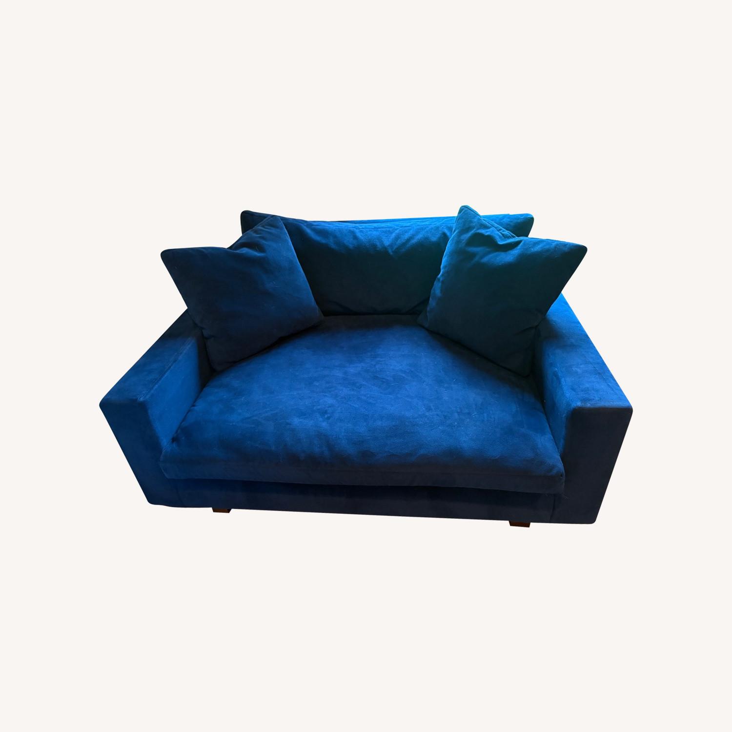 West Elm Harmony Blue Velvet Loveseat - image-0