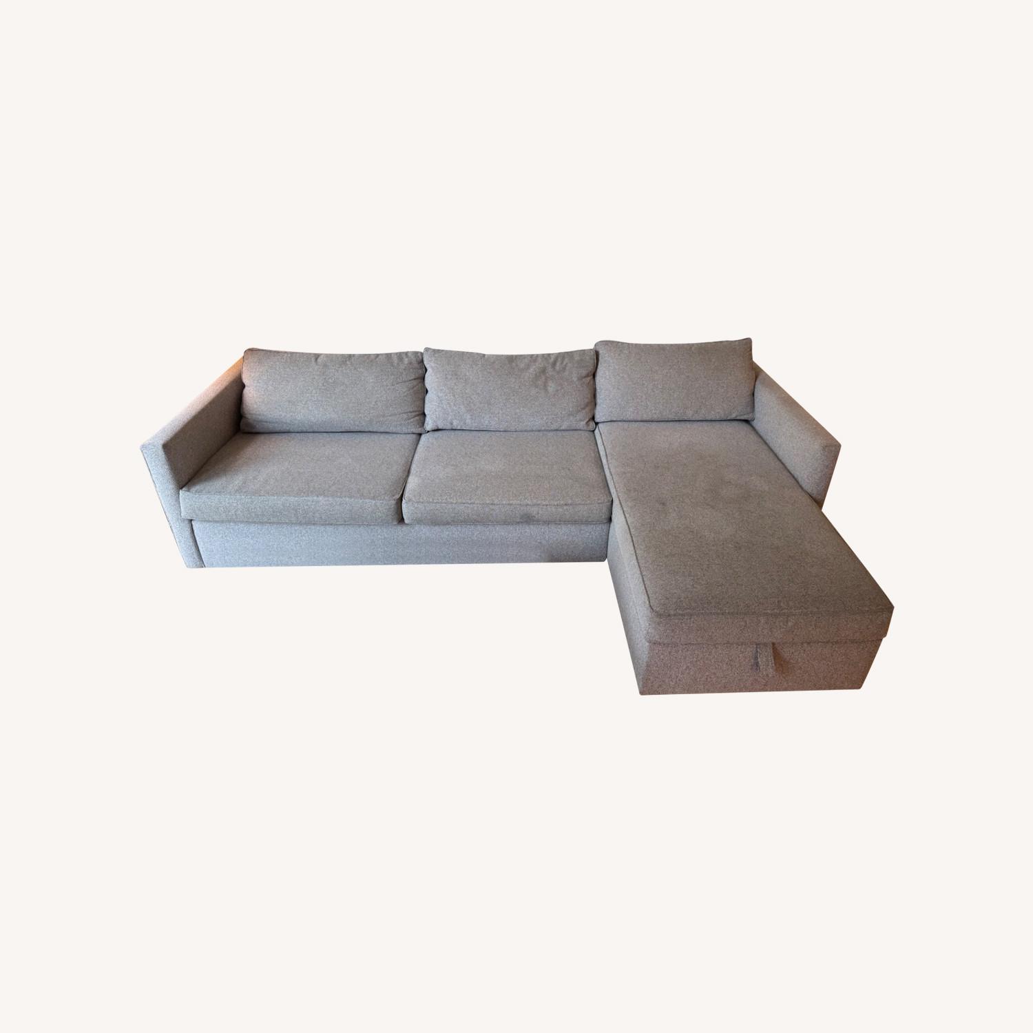 Seller's Notes:This is the Harris Sectional Set 03 in Irongate Poly Chenille Tweed — features a left arm sleeper and right arm storage chaise.