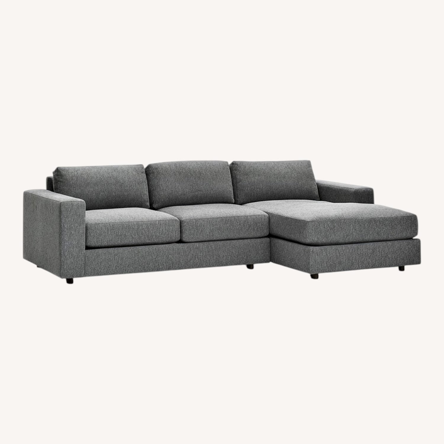 Seller's Notes:This is the West Elm Ubrna sectional in the 106" size. It has a contract-grade canvas fabric in Feather Grey, a custom order. This couch has been in a smoke-free and pet-free home.