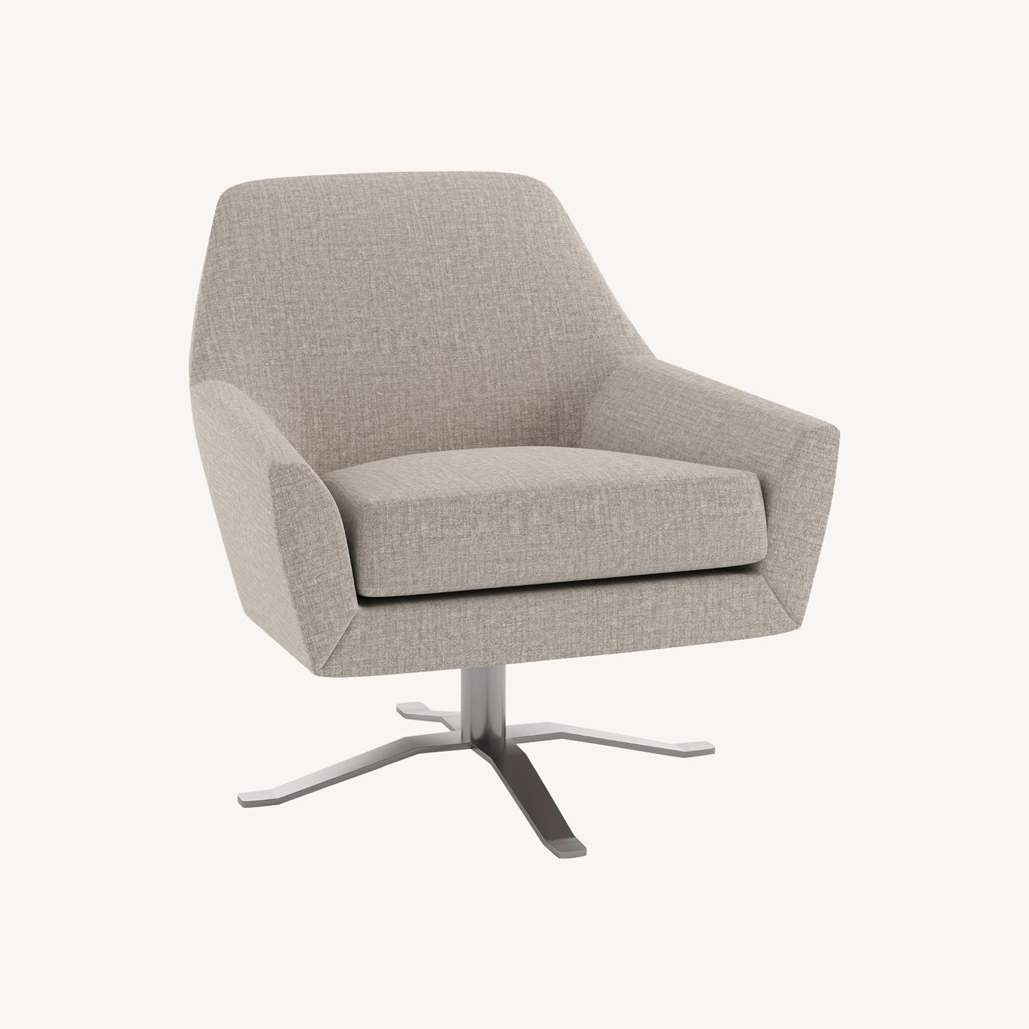 Seller's Notes:Super comfy beige swivel arm chair from West Elm. Sturdy and can be sat in cross legged. Unfortunately won’t fit in our new space. Good condition, some loose threads and small areas of discoloration but fabric is very forgiving and could come out with a deep clean.