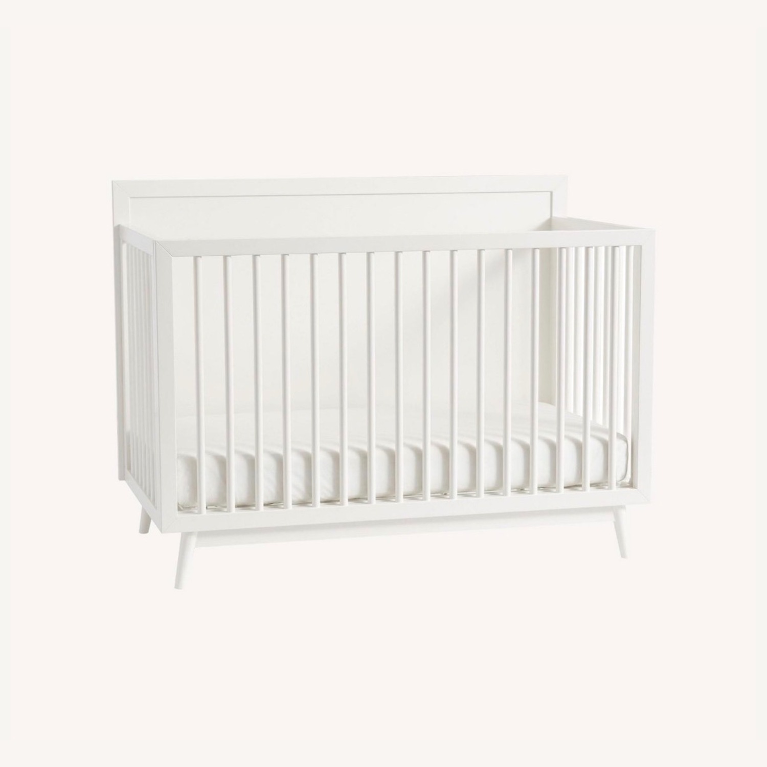 Seller's Notes:West Elm Mid Century convertible crib in rare color White. Retails for $1,000. Purchased in 2024. Excellent condition, very well kept. Includes West Elm luxury Lullaby mattress (which has a toddler side and a newborn side), as well as both crib formulation and matching toddler rail. Pickup only on Upper East Side!