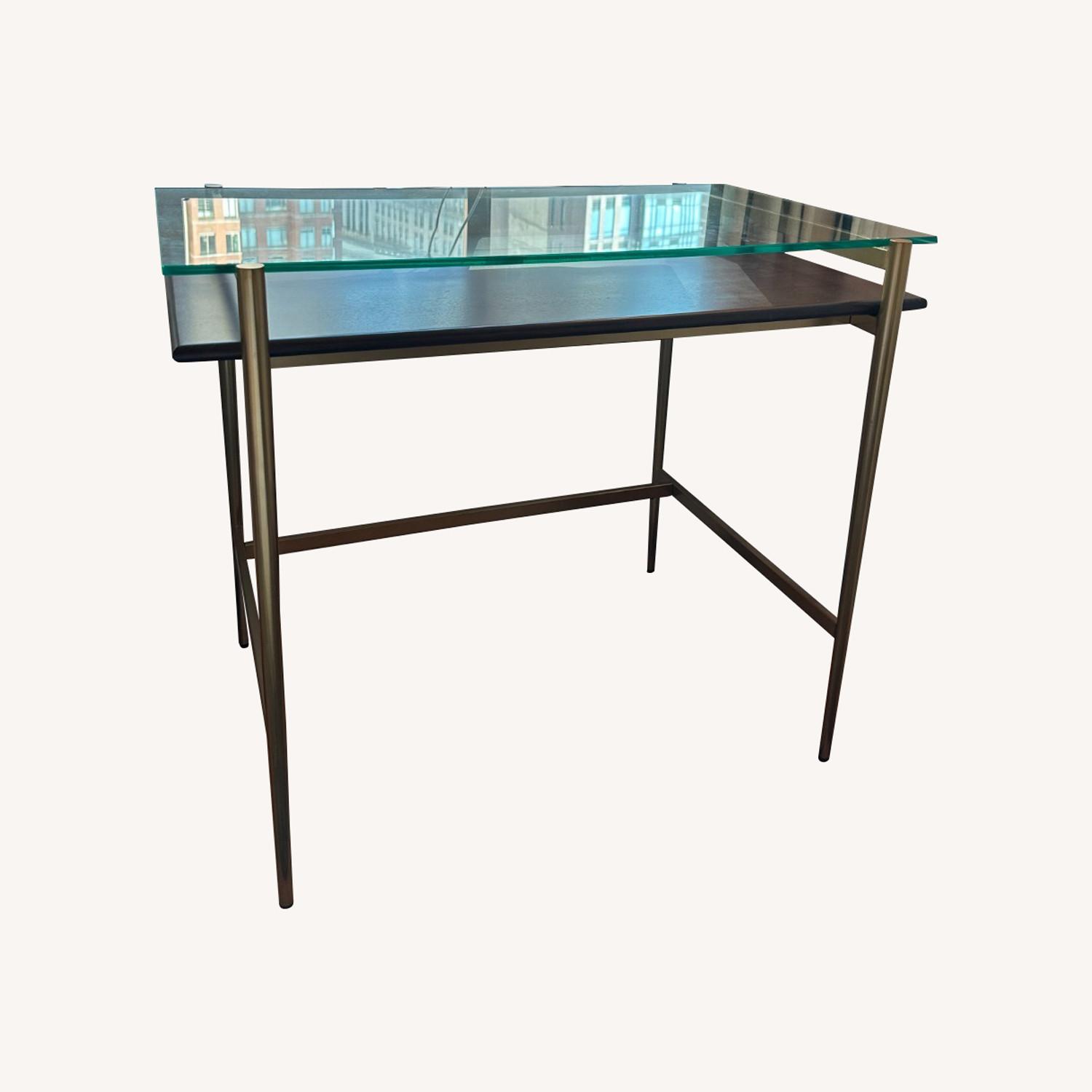 Seller's Notes:West Elm Mid-Century Art Display Mini Desk (36") for sale - used for the past 2 years but show almost no signs of wear minus a small scratch captured in photos; glass and wood are in near perfect condition. I am downsizing apartments so no longer have space for this.