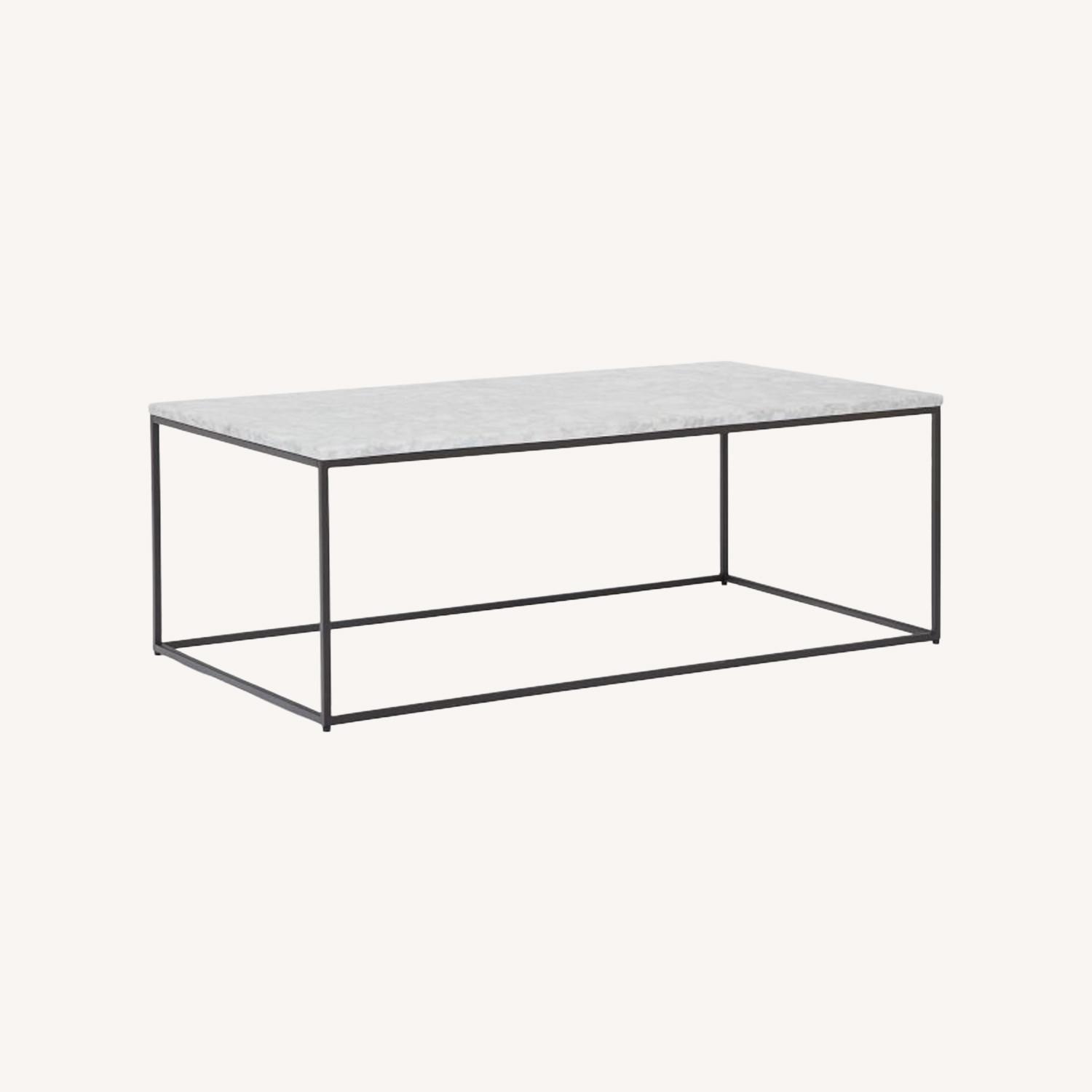 Seller's Notes:Lovely West Elm marble-topped, steel-based table. I've used as a coffee table in front of couch, but could easily be used in other ways, like as a tv console or a sidebar . In fantastic condition - practically looks new. Only reason I'm selling is because I'm moving to a slightly smaller space so need a slightly smaller coffee table. Note: There is one corner that has a small chip from a previous move. Included a very close-up photo of it for transparency. Barely noticeable in real life.