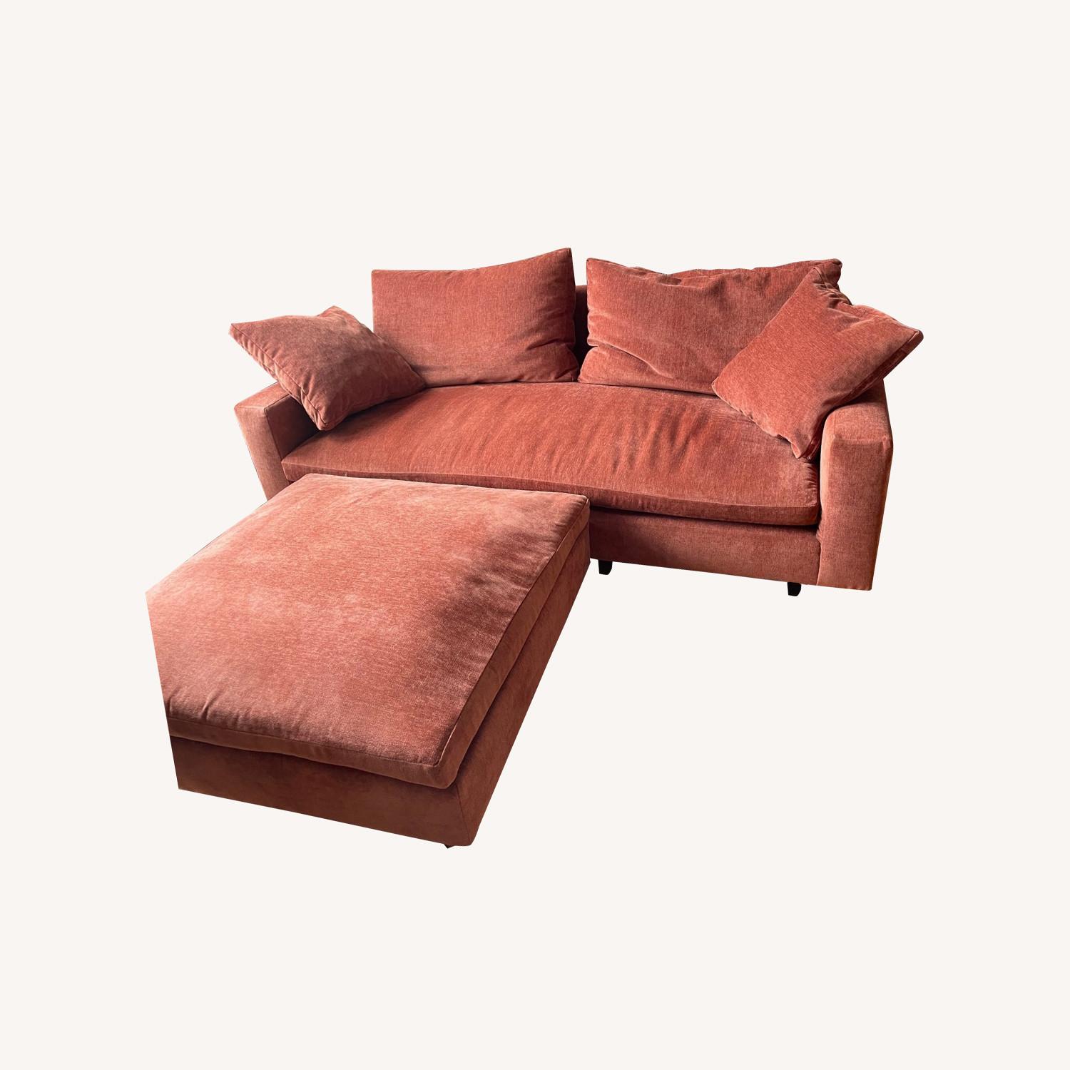 West Elm Velvet Harmony Petite Sofa and Ottoman