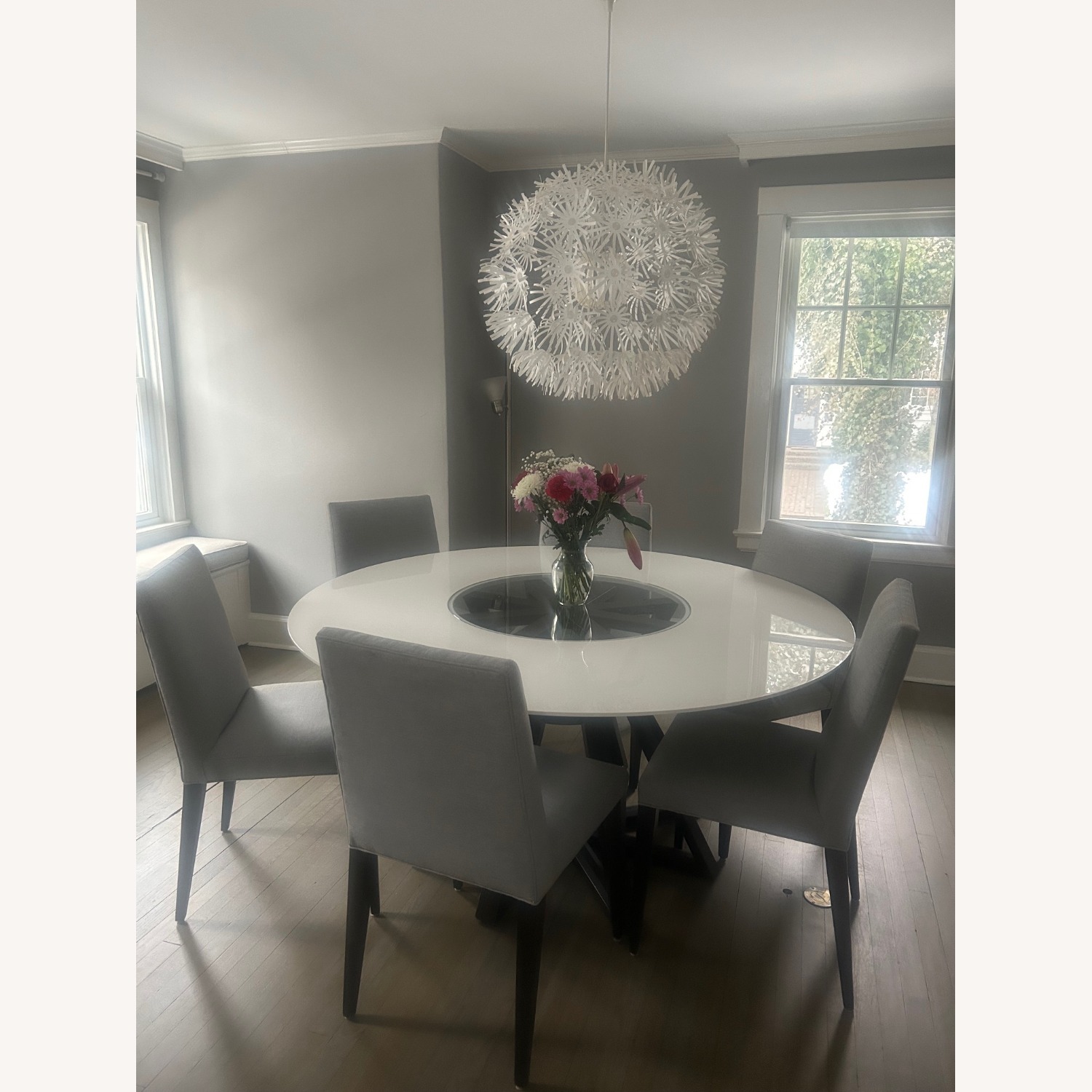 White Lacquer Dining Table, Wood Base + 6 Chairs - image-5