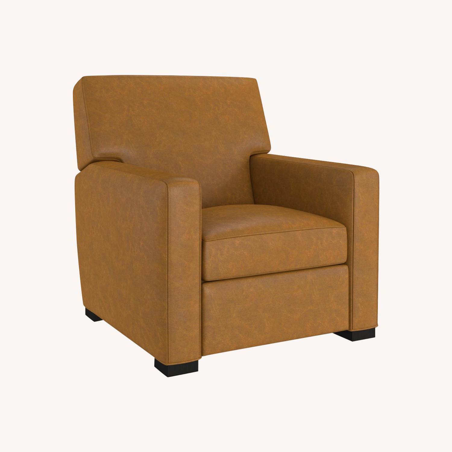 Seller's Notes:Our recliner boasts a square back, deep seats and thickly padded track arms that offer the ultimate comfort. Constructed with old-world care for heirloom quality, it's covered in your choice of our premium leathers. Italian Distressed Leather in Toffee Frame is crafted of engineered wood. Mortise-and-tenon joinery. Feet are made of solid maple. Seat cushions have high-resiliency foam cores with inner springs for additional support. Cushion cores are wrapped in premium down blend (encased in poly/cotton fabric) or single-layer poly fiber. Handcrafted in USA by skilled artisans using American and imported materials. (3666183)