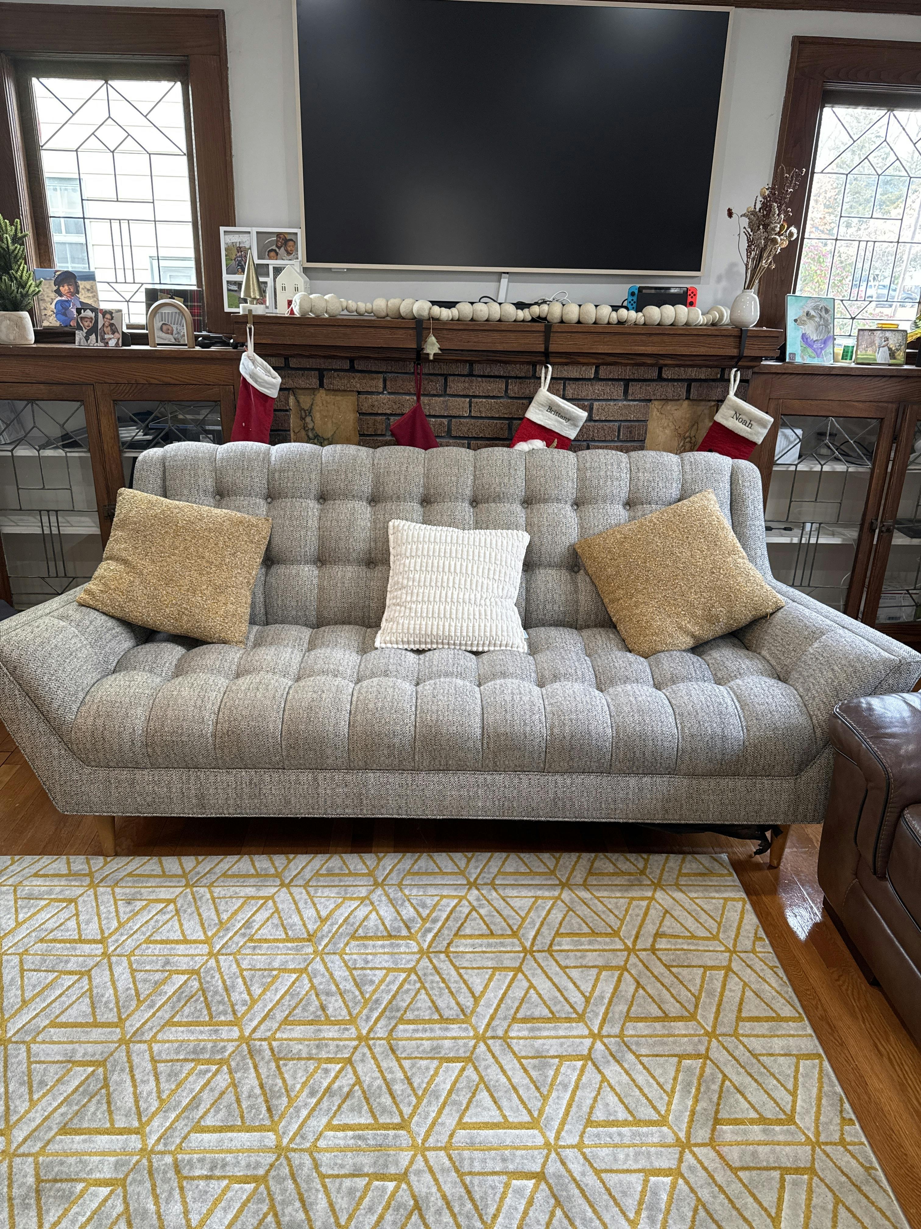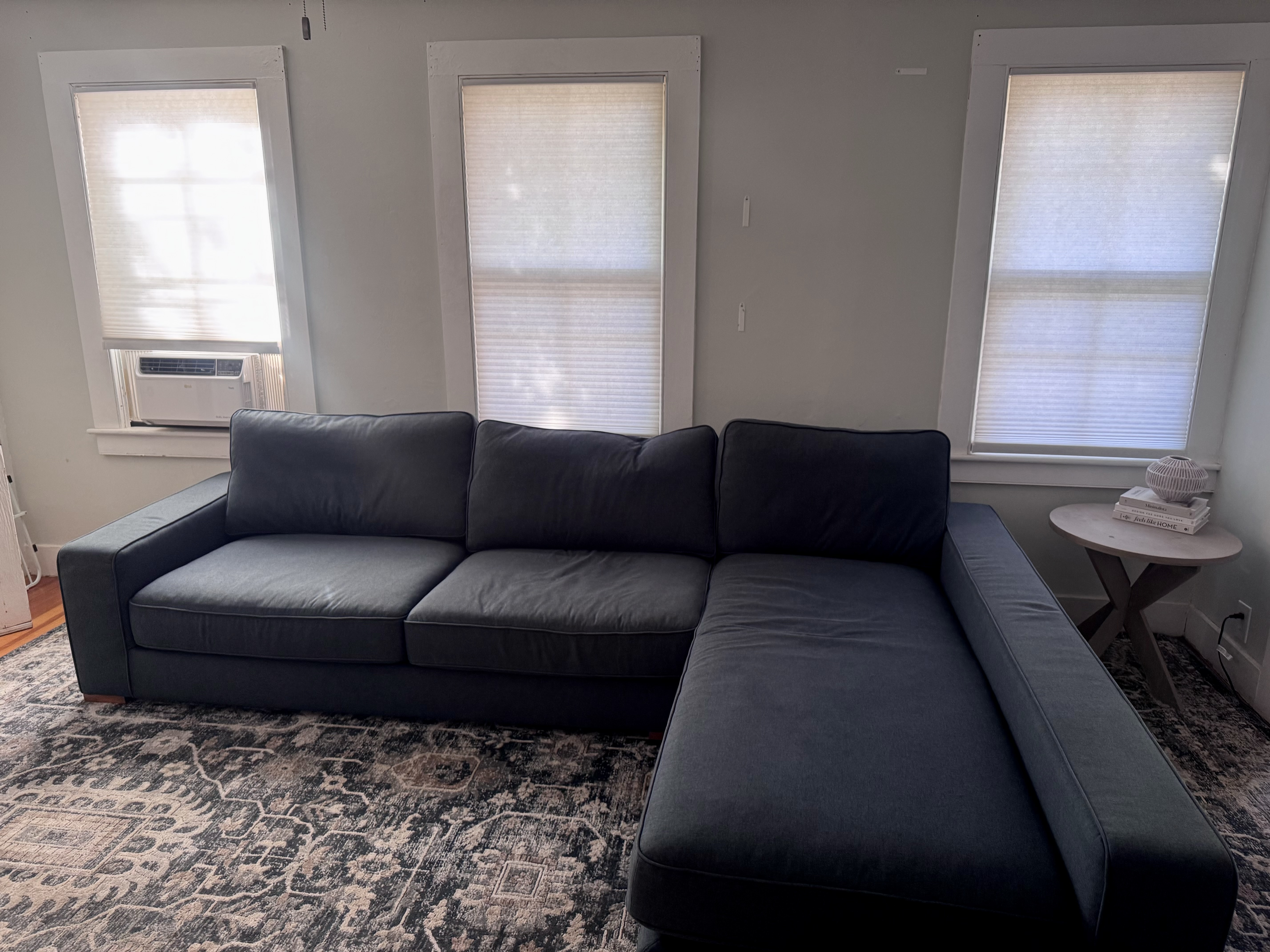 The idea was definitely not as described, I feel a little duped. The item has lots of stains that were not described or depicted in the photos. I spent all day using my bissell cleaner on it and the stains still won’t come out. Overall I am sad and disappointed but going to make the best of it. AptDeco did nothing wrong and had great service, but I wish they could review the items before.